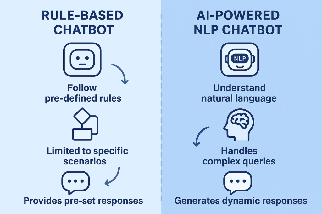Rule-based chatbots operate on predefined scripts or decision trees. They respond to specific keywords or phrases with fixed responses. While easy to set up, they are limited in handling complex queries. For example, a rule-based bot might answer “What are your business hours?” but struggle with nuanced requests like “Can I reschedule my appointment to next week?”