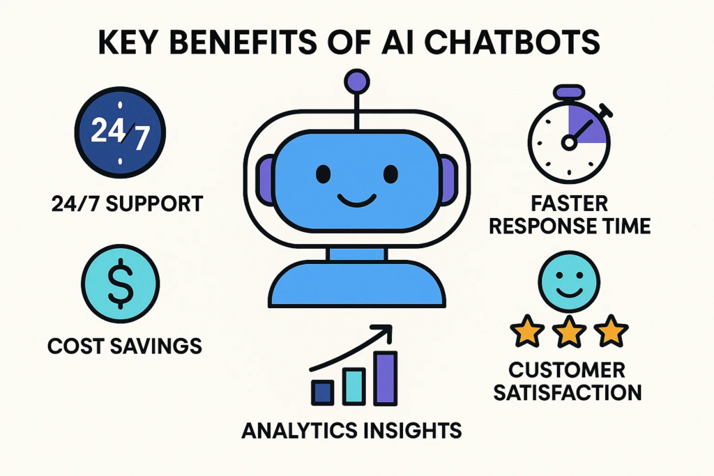 Implementing AI chatbots brings multiple advantages that go beyond simple cost-cutting. Here are some of the most significant benefits: