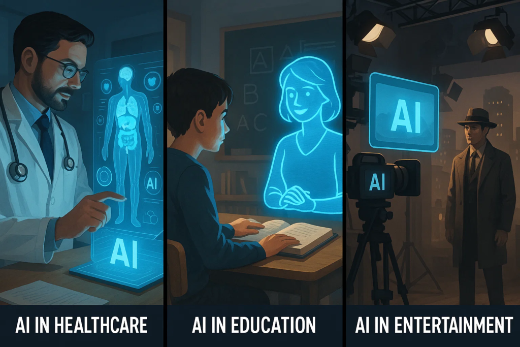 • Healthcare & Education: AI-powered diagnosis, tutoring systems, and virtual training platforms.