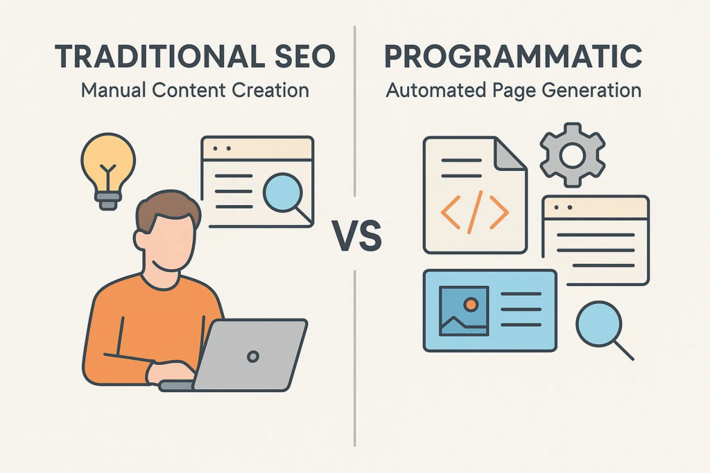 Programmatic SEO is an approach that automates the creation of web pages using templates, structured data, and dynamic content, all optimized for search engines. Unlike traditional SEO, which relies heavily on manually crafted content, programmatic SEO focuses on efficiency, scalability, and data-driven strategies.